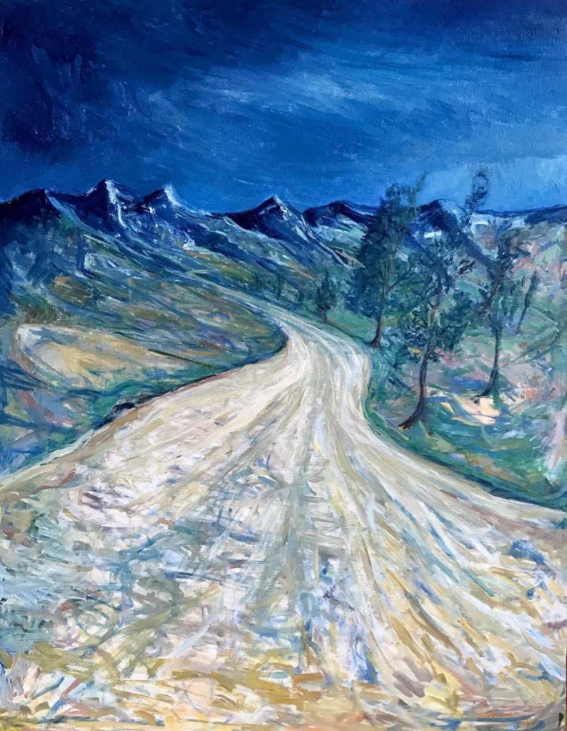 “Paisaje de Nuevo León” / “Hay un camino… “ | Óleo sobre MDF, 90cm x 70cm alla prima, Dic 2, 2017 – Lauro Pedraza
