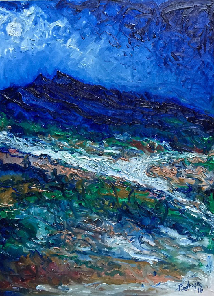 “El riachuelo de las montañas” óleo sobre lienzo alla prima – abril 14, 2014.“Junto a las aguas” óleo sobre lienzo alla prima, 2018. Lauro Pedraza.“Una noche en Copacabana, óleo sobre lienzo 80cm x 60cm, Lauro Pedraza, 2016“Música” Pintura al temple sobre lienzo 90cm x 80cm – Lauro Pedraza, 1997.“Paisaje en un día de sol, tributo al maestro Van Gogh” Óleo sobre lienzo alla prima 76cm x 61cm x 3.5cm, febrero del 2015“Tardecer en el parque Santa Lucía con vista al Cerro de la Silla” Oil on canvas “Bodegón de Flores y Frutas” Mixed media on canvas “El riachuelo” Oil on canvas, 2015“La Montana” Mixed media on Canvas, 2013“After the storm comes the calm” Oil on canvas, 1995“Madre Tierra” Dyptich, Oil on canvas“La canícula” Oil on canvas, 2015“Donde se juntan los arroyos” Oil on canvas, 2016“Still life with violin” Oil on canvas“Azahares” mixed media on paper “Borrascoso mar” Oil on canvas, 2015“Cielo rojo” Oil on canvas, 90cm x 70cm, 2012 “La otra dimensión” Oil on canvas, September, 2014“Still life in Blue” Oil on wood “Monterrey” Oil on canvas dyptich “Santa Lucía” oil on canvas 150cm x 90cm, May, 2015“El pacífico azul” Oil on masonite 79.7cm x 60cm, May, 2016“A la luz de la Luna” Oil on canvas“El Cerro de la Silla” Oil on masonite, 2016